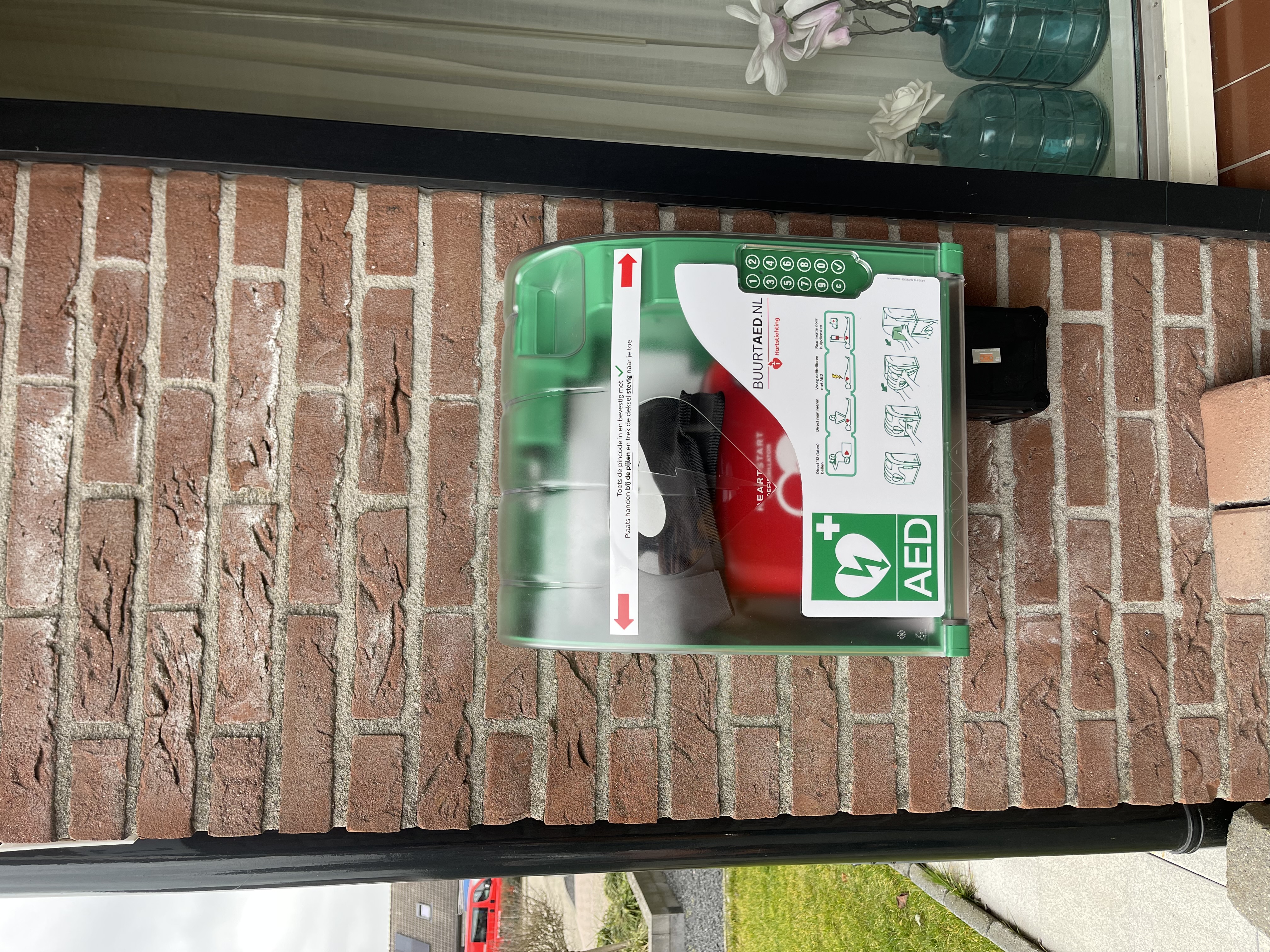 De AED is sinds vandaag actief en staat ook vermeld in de app www.hartslagnu.nl