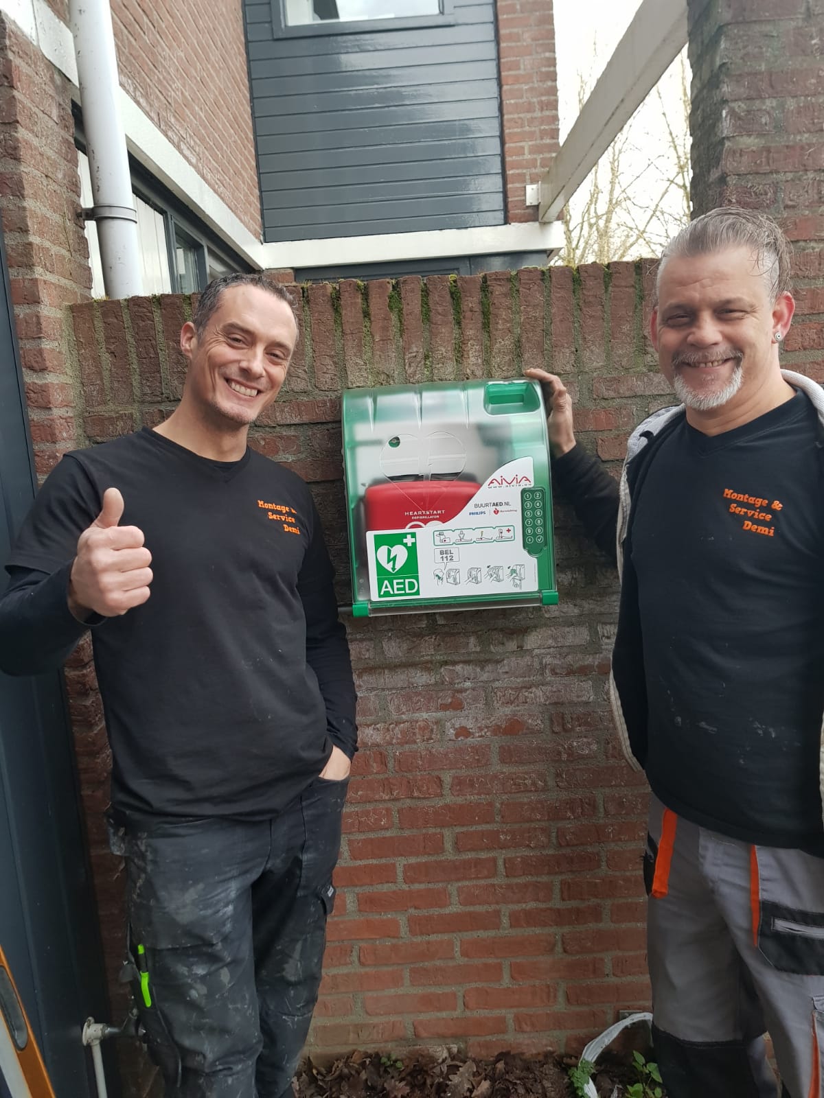 De AED heeft een veilige plek gekregen waar deze dag en nacht is voorzien van stroom en dit dankzij het vakmanschap van 2 geweldige kanjers! Het bedrijf Montage & Service Demi heeft aangeboden de AED volledig veilig en volgens de laatste voorwaarden te monteren waardoor de AED nu hangt zoals het hoort. Dit fantastische bedrijf heeft de kosten hiervoor voor eigen rekening genomen! Dank jullie wel mannen van Montage & Service Demi !!! Mede dankzij jullie heeft de Groenhof nu een AED.