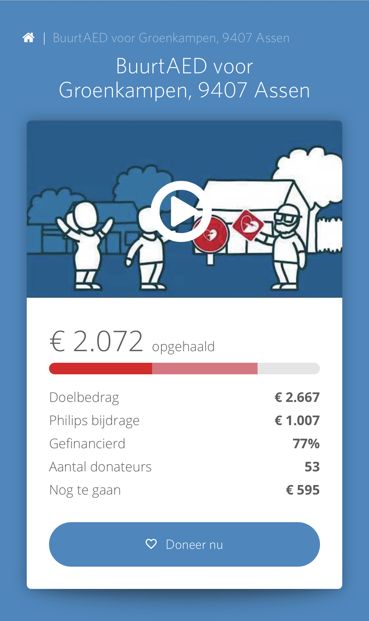 We zijn nog 33% verwijderd (€595) euro van de 1665 euro en dan is onze wijk de Kampen (hart)veilig en dat door u bijdrage!
