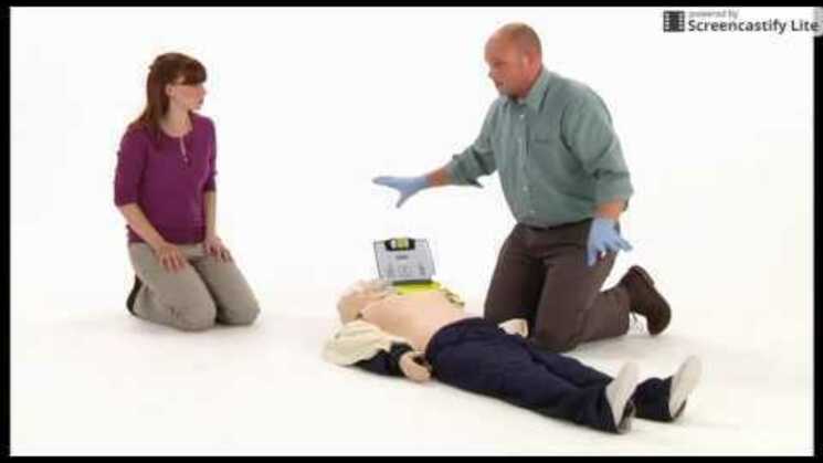 Deze manier laat zien hoe er gewerkt moet worden om de AED te laten functioneren. Het apparaat praat in je eigen taal, dus bij ons in het Nederlands.