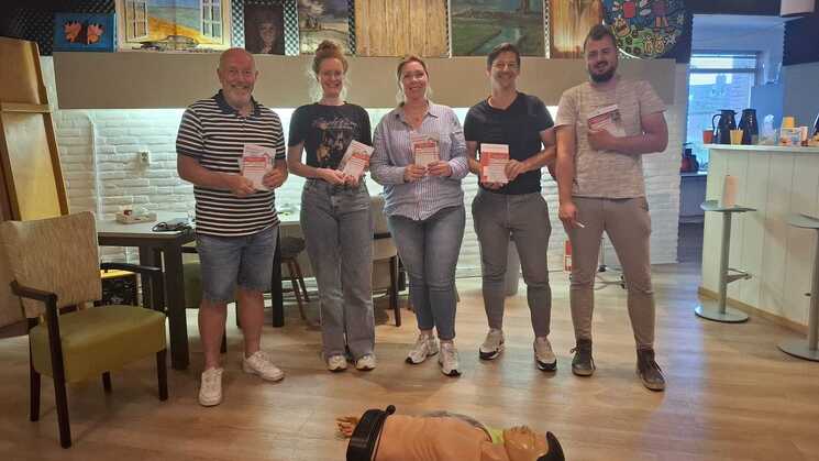 De afgelopen twee maandagen hebben 6 buurtgenoten in 4 uur tijd keihard gebikkeld en geoefend om goed te kunnen reanimeren en om de AED te kunnen bedienen.