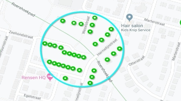 Als het moet zullen we de mensen die wonen op een adres in de blauwe circel middels een brief benaderen maar mogelijk reageerd er al iemand op deze nieuwsbrief.