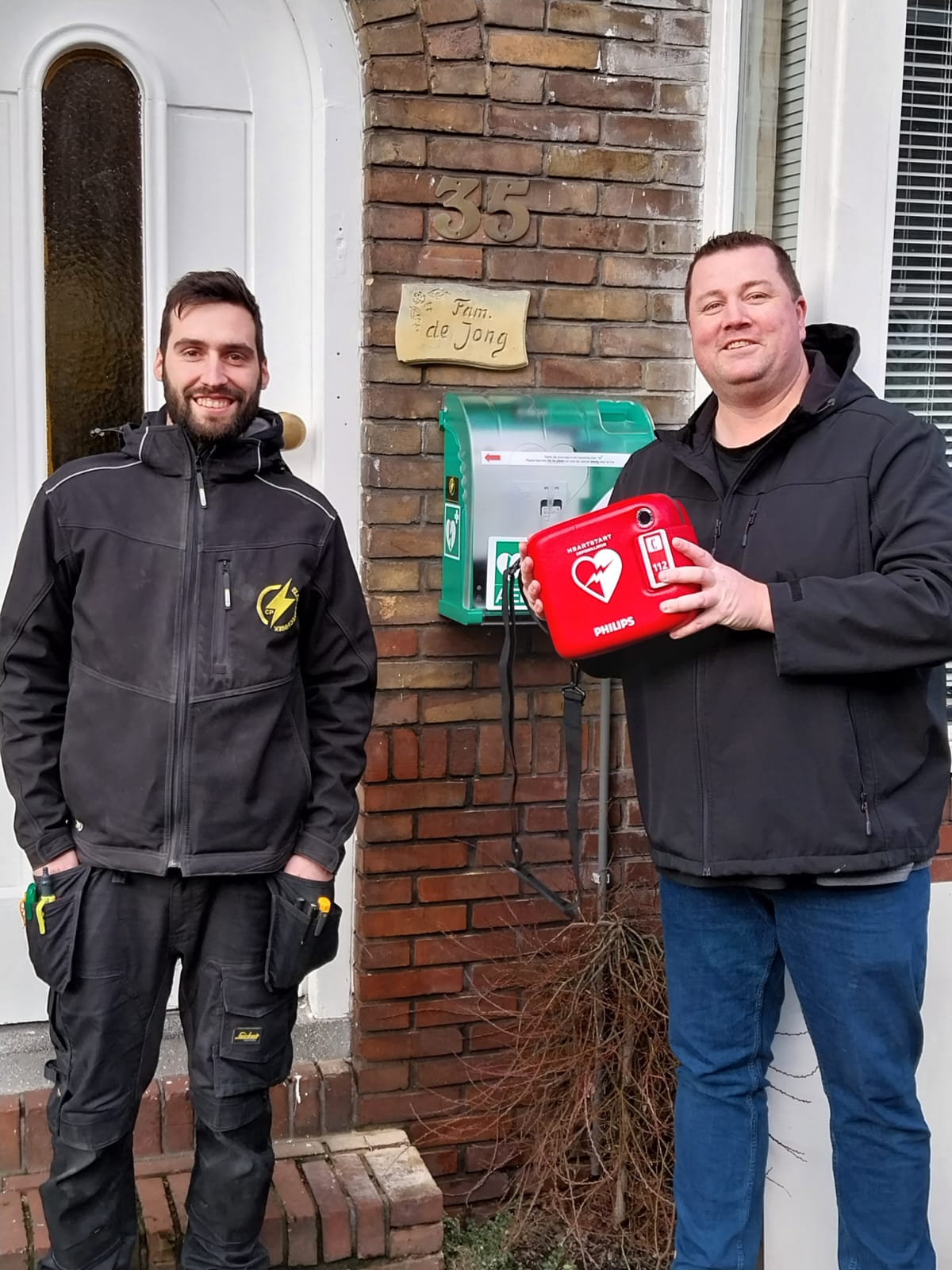 Onze BuurtAED hangt naast mijn voordeur en er hangt een cameradeurbel bij onze deur waarop iedere beweging in de voortuin opgenomen wordt. Ik ga er dus vanuit dat de AED hier veilig hangt en diefstal niet gaat gebeuren.