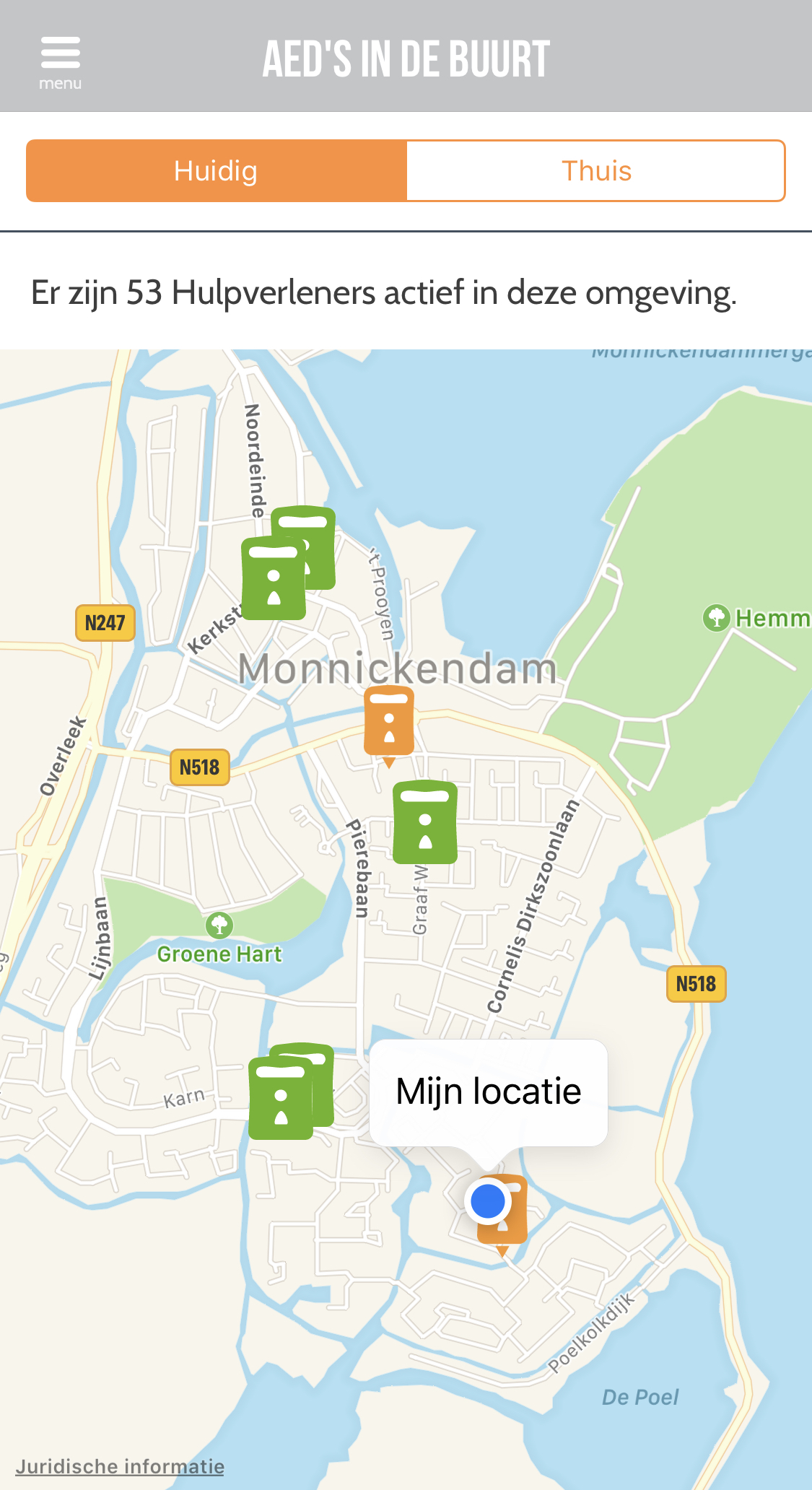 Zoals je hieronder kunt zien, is dit de dekking die we binnen Monnickendam hebben met AED's.
