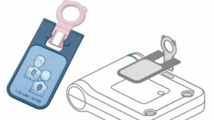 Dit kinderslot dient in de AED te worden gestoken als een kind van minder dan 25 KG en jonger dan 8 jaar dient te worden gereanimeerd.