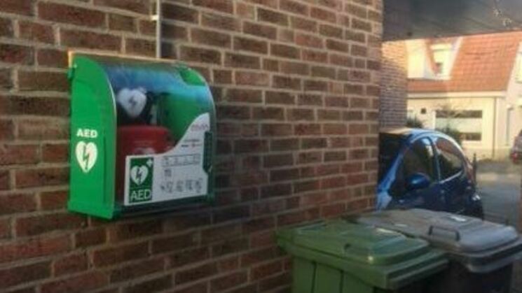 De AED zit veilig opgeborgen in een stevige buitenkast, die met een pincode kan worden geopend. Deze pincode is bekend bij de alarmcentrale, en zal worden doorgegeven aan de burgerhulpverleners die worden opgeroepen om de AED op te halen.