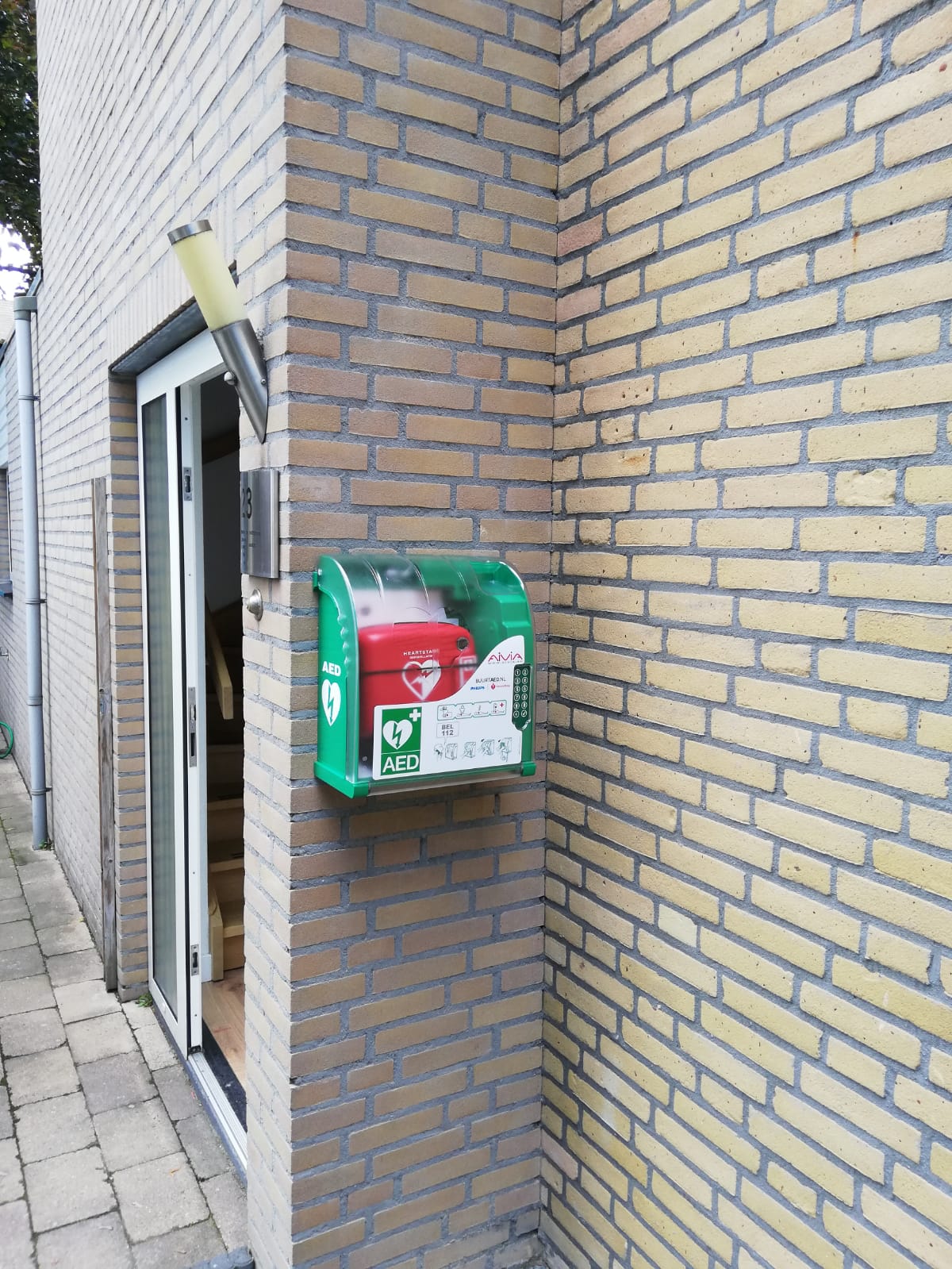 Het wachten is nog even op het ophangen van de 3e AED aan de Zuringbeek, zodra bewoner en installateur op het zelfde moment beschikbaar zijn, gaat dit gebeuren.